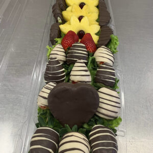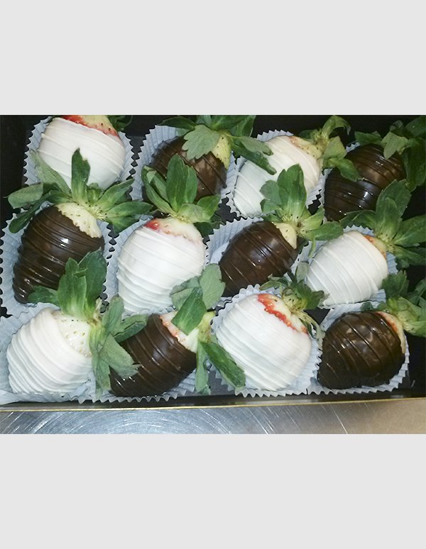 A chocolate covered strawberry arrangement that combines the freshness of strawberries with the sweetness of two types of chocolate, creating a unique and delicious flavor experience. The perfect gift for family gatherings, this arrangement is a versatile option that is sure to please all palates by offering an irresistible combination of flavors and textures as it is a delicious way to celebrate special moments and create lasting memories with friends and loved ones.