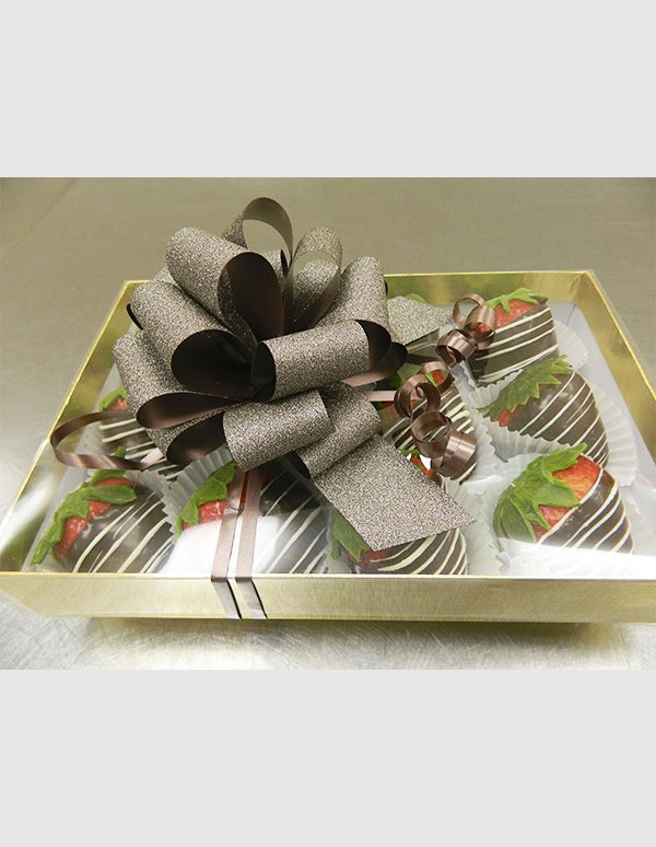 An elegant chocolate covered strawberry arrangement combining a dozen strawberries with the deliciousness of chocolate, it is perfect from a range of birthday celebrations to gifts to celebrate important achievements, this arrangement is a versatile option that is sure to delight any recipient, creating a visually stunning and delicious presentation.